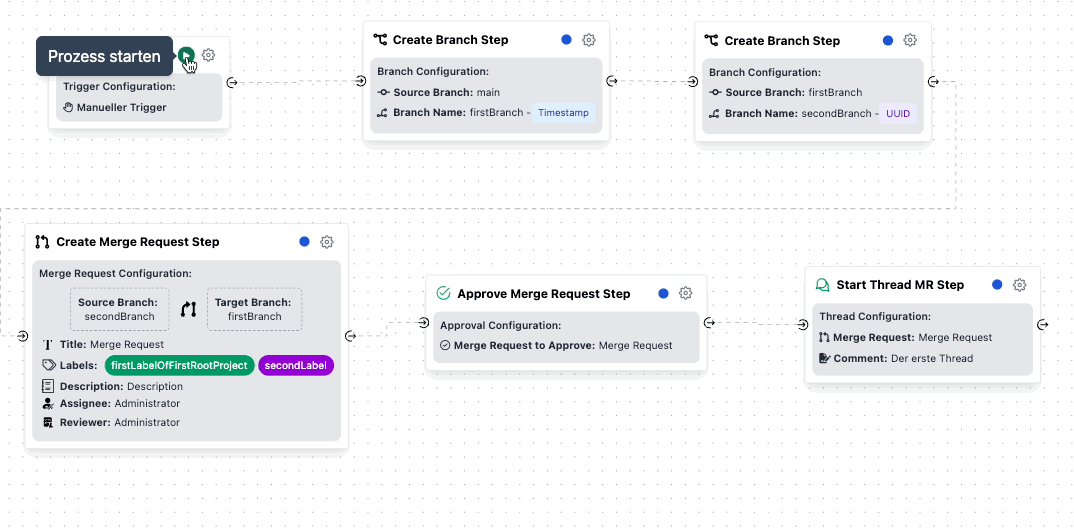 Prozesse können auf Repository-, Benutzer-Repository- und Gruppenebene definiert werden. Auf Gruppenebene muss nur ein generischer Prozess für die gesamte GitLab-Gruppe erstellt werden, der dann in allen Repositories dieser Gruppe ausgeführt werden kann.