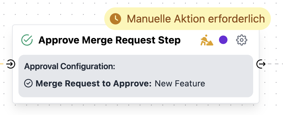 Wenn ein Prozessschritt als manueller Step markiert ist, wird der Prozess bei dem manuellen Step angehalten und fortgesetzt, wenn die manuelle Aktion abgeschlossen ist.